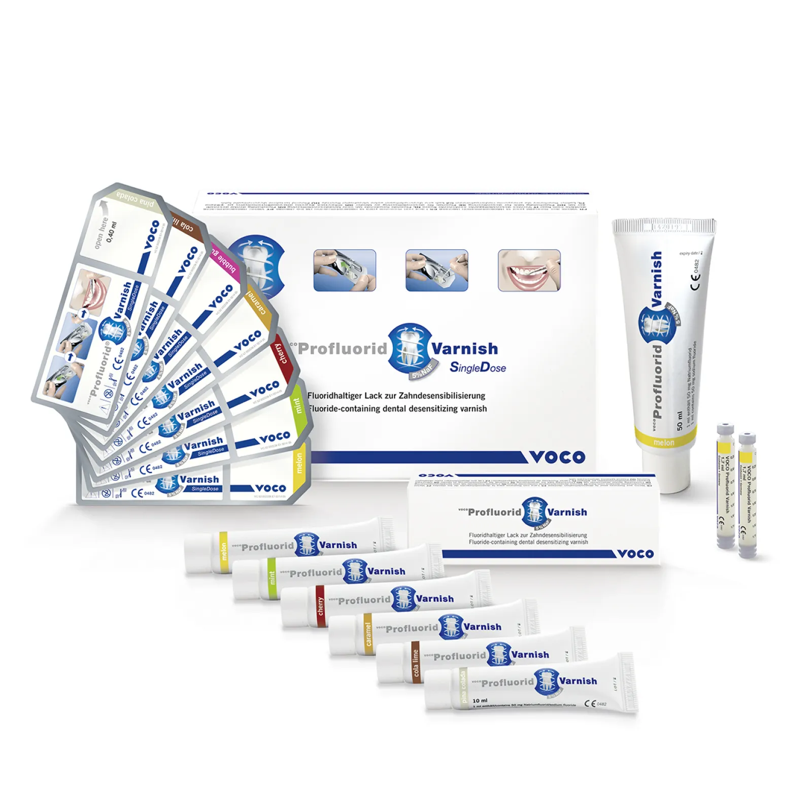 22,600 ppm(≙5%氟化钠)。该产品除了能够迅速封闭牙本质小管外,还能使氟化钙沉积在牙齿表面。这些沉积物可以保护牙齿免受酸性物质的侵蚀,促进再矿化,并长期有助于氟磷灰石的形成。宝氟锐齿科脱敏剂有七种口味可供选择,符合牙齿自然色泽,更加美观。